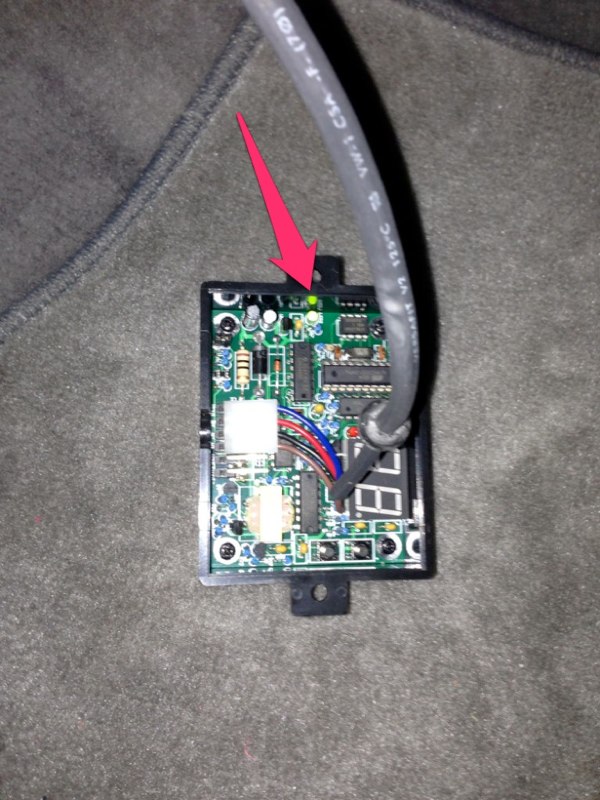 Then I re-connected the battery and checked that I was getting 12v to the red wire and confirmed that the green LED came on inside the speedo box when the key was turned to ON. Leave the back cover off for now...