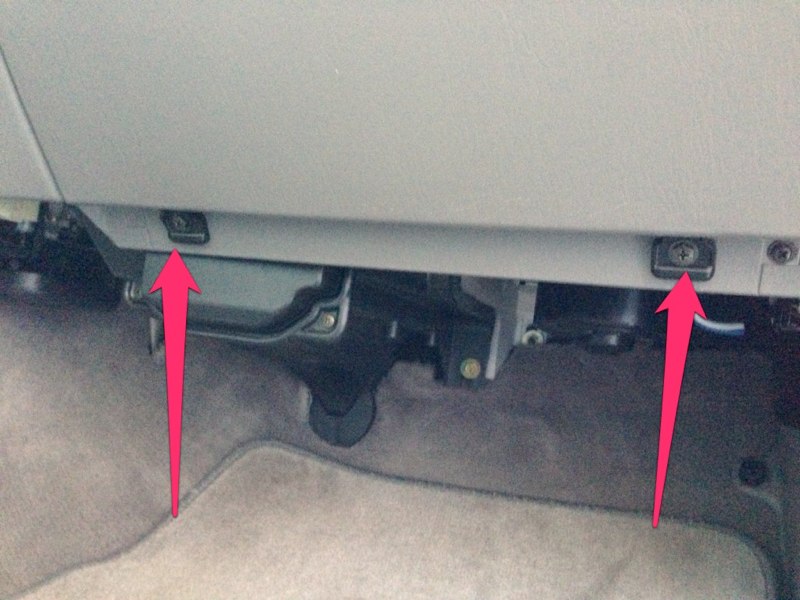 The first step was to remove the glove box. Start by removing the two screws at the bottom which loosens the entire assembly...