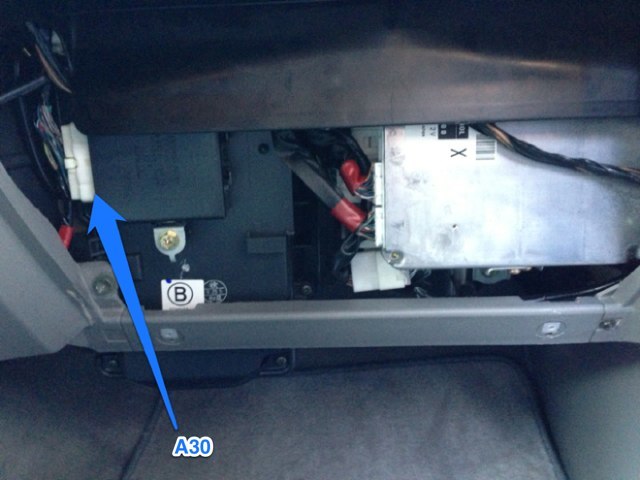 Now I took the recommendation of jhrrld and tapped into the antenna relay wiring (A30) located nearby. There are certainly other wires to choose from but I decided to stick with something that had been confirmed to work...