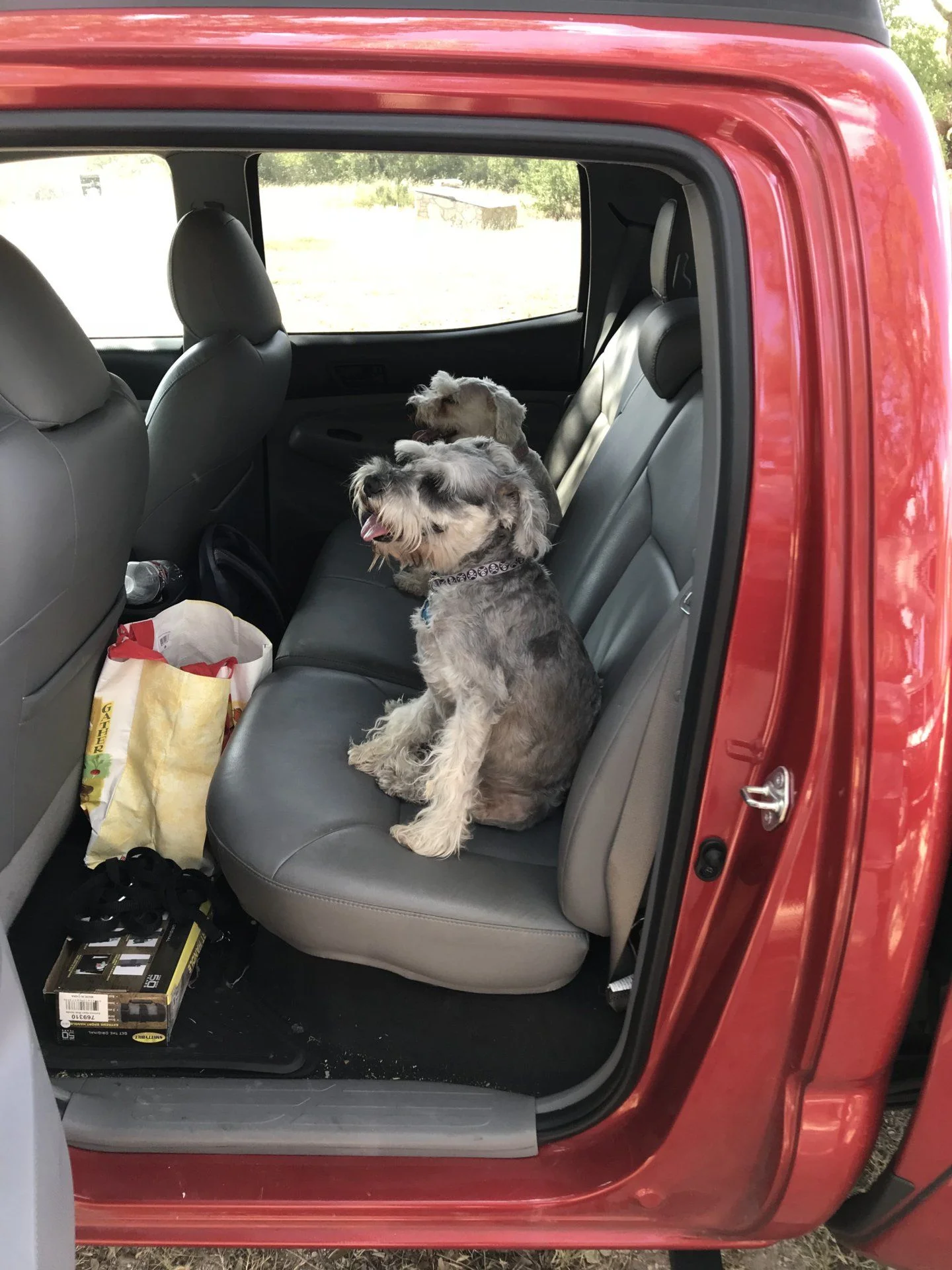 Road trip. Someone likes AC. Hard to tell but these two had their faces stuck up to the center AC vents.