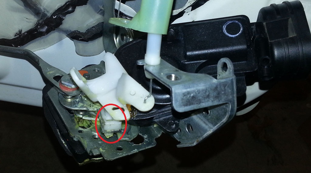 Oh the shame! I'm a died in the wool DIY'er and was replacing my power door lock motors. The front and rear passenger doors had failed. The front door went smoothly and I didn't encounter any surprises along the way. The back door seemed to be even easier - to a point. When removing the electric door lock assembly from the latch mechanism a small piece of nylon suddenly was in my hand. I inspected it and thought I knew how to reinstall it on the latch mechanism. I was wrong. If I had been using my head I would have tested the assembly upon re-installation - but noooooo! I reinstalled the mechanism, put on the interior door panel and shut the door. Big mistake. :whoops: