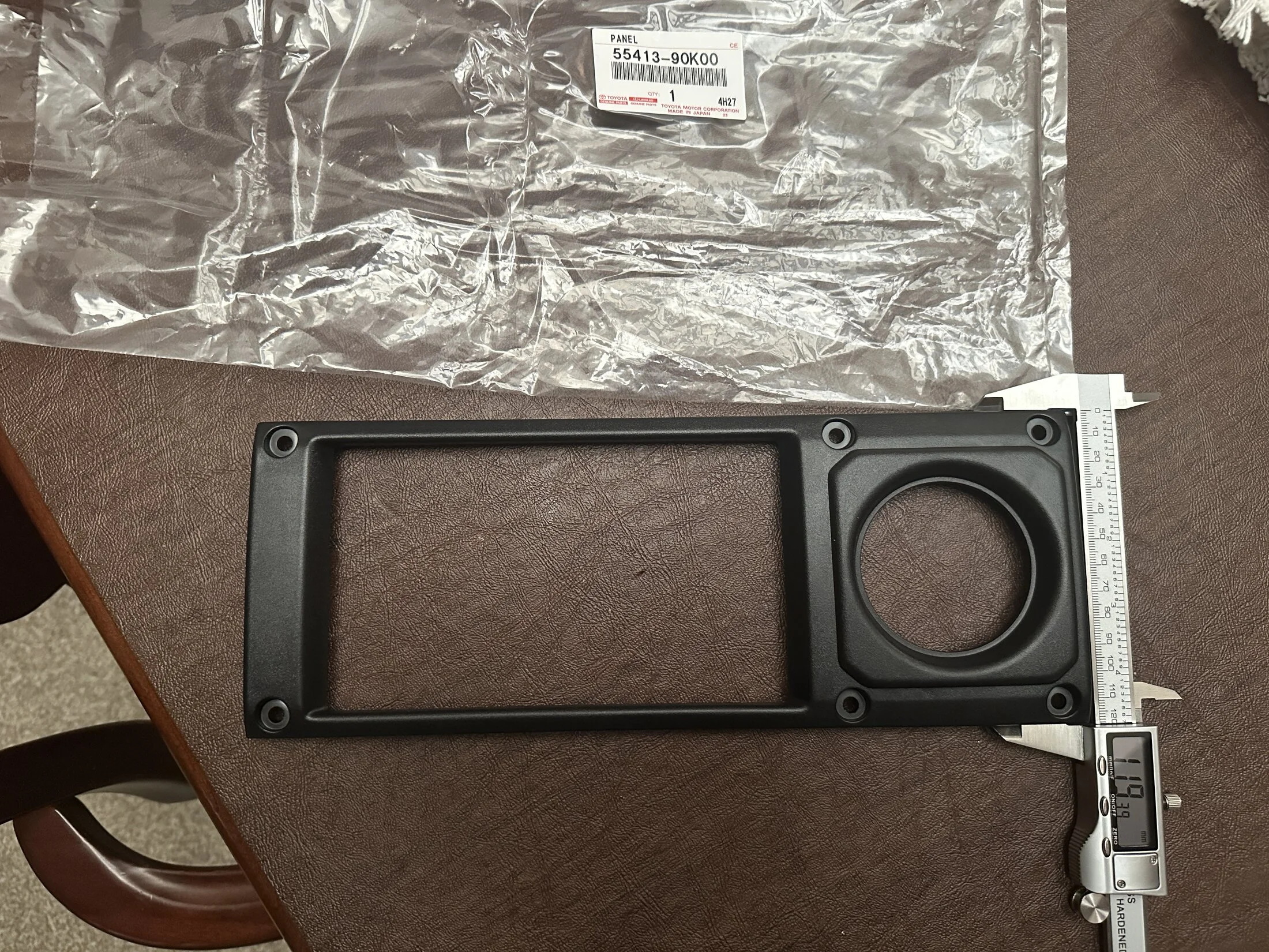 Your dash looks just like many (if not most all) pre-2006 70 series, not just the KZJs. Here is the double din piece for my dash, a 1998 FZJ70 (pic with part removed also included below), with measurements (ignore the tenths measurement on my tape measure). It is almost certain to fit yours, too.