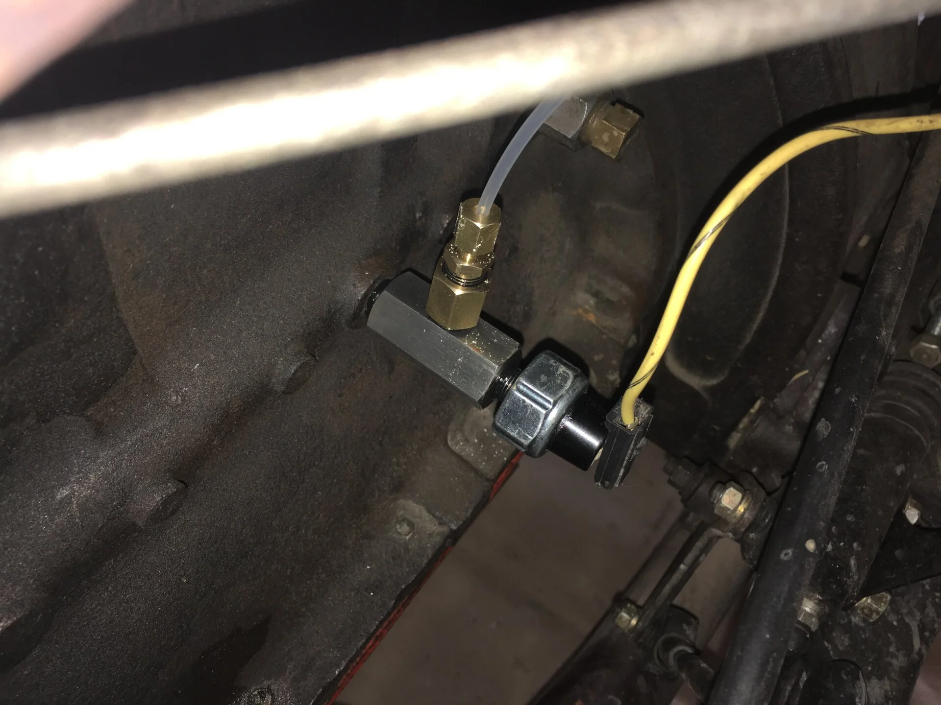 …along with a standard Autometer mechanical oil pressure gauge and fittings and the OEM low pressure sensor in the stock gauge location to get to this on the motor…