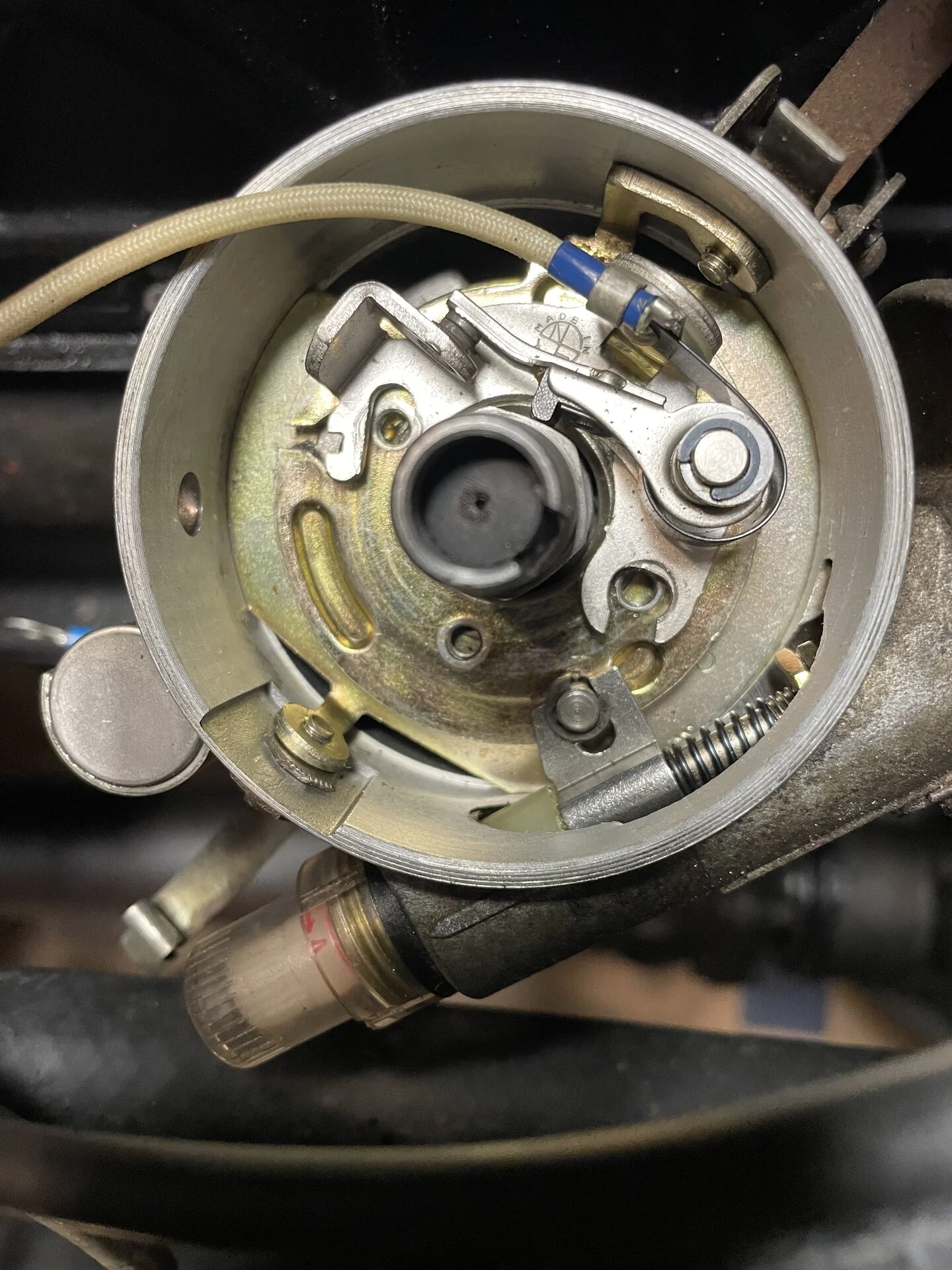 I am trying to make the switch from points to electronic ignition. Running this vac advance dizzy which runs good.