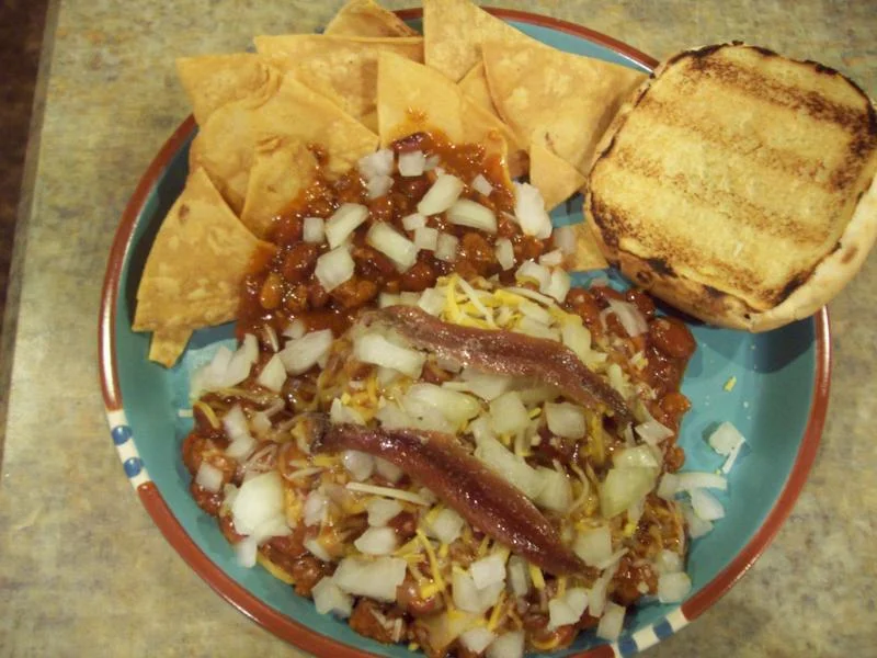 Left overs from the pizza the night before (which I may add, cat fud is excellent with)...So far, pizza and ceasar dressing are the only things they work with imo.. The wife is out of town, I was craving salt..