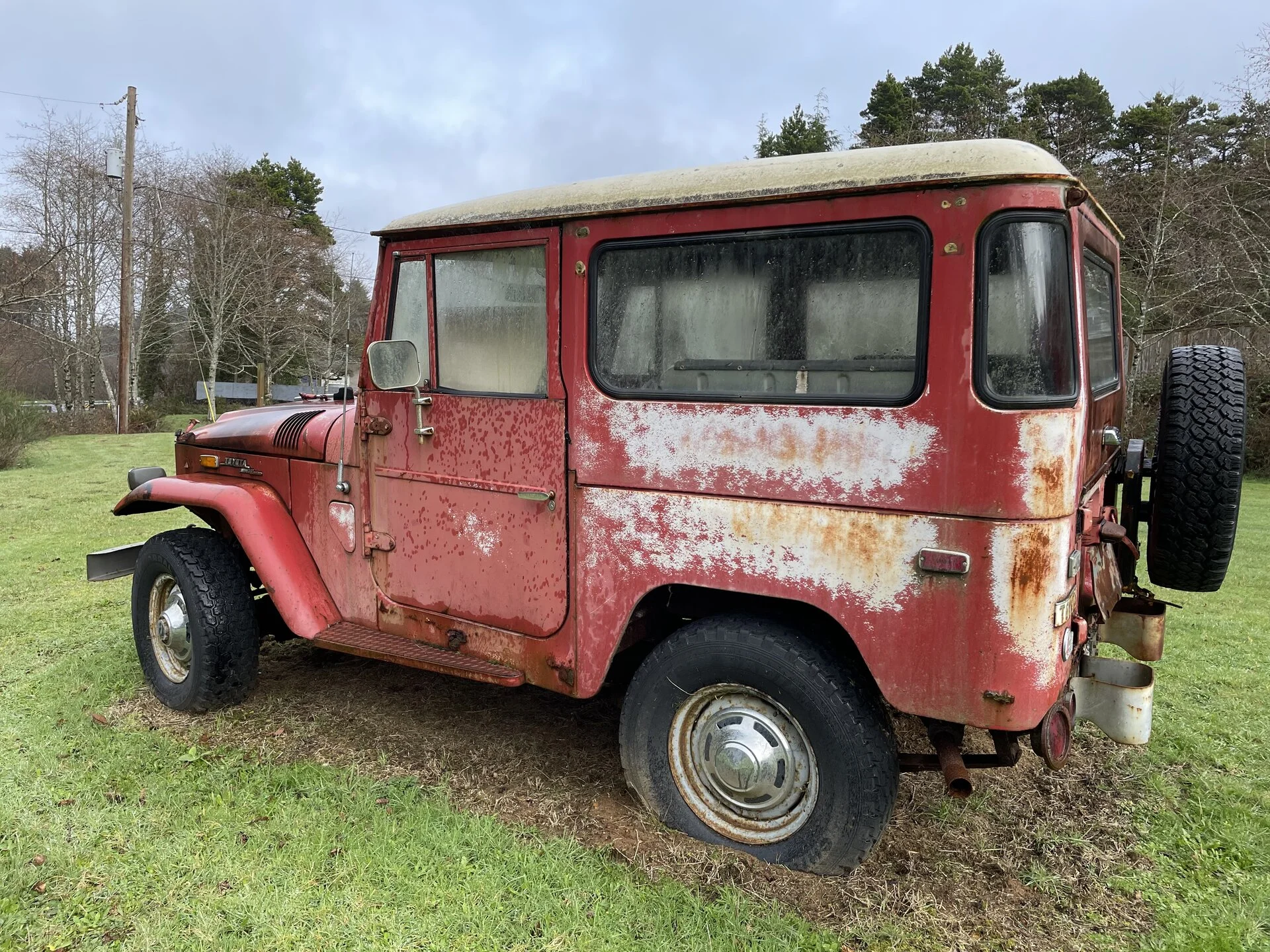 I know this truck. It belongs to Scott Gesik who owns a wicked cruiser restoration shop. My sons and I bought a FJ45 SWB from him (now for saleAlso went to visit my sister in Salem OR. Unbelievable country up there. So beautiful. We went to the coast to Lincoln City. I saw this thing in a field….if I only had a truck and trailer.