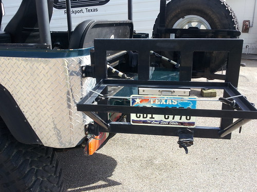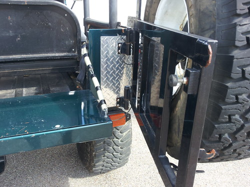 Custom rear tire swing + jerry can/cooler carrier