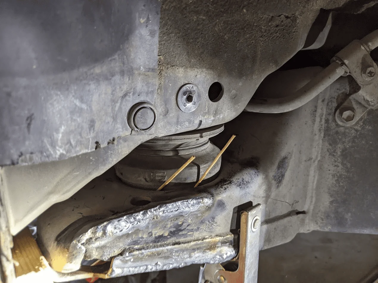 I think it would be rather easy to bottom out the front suspension by putting it in AHC low, then running up on a mild ramp with a single corner?