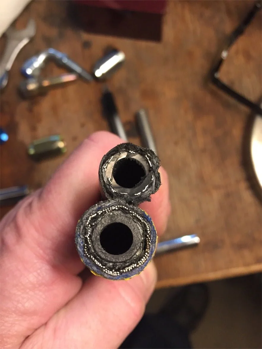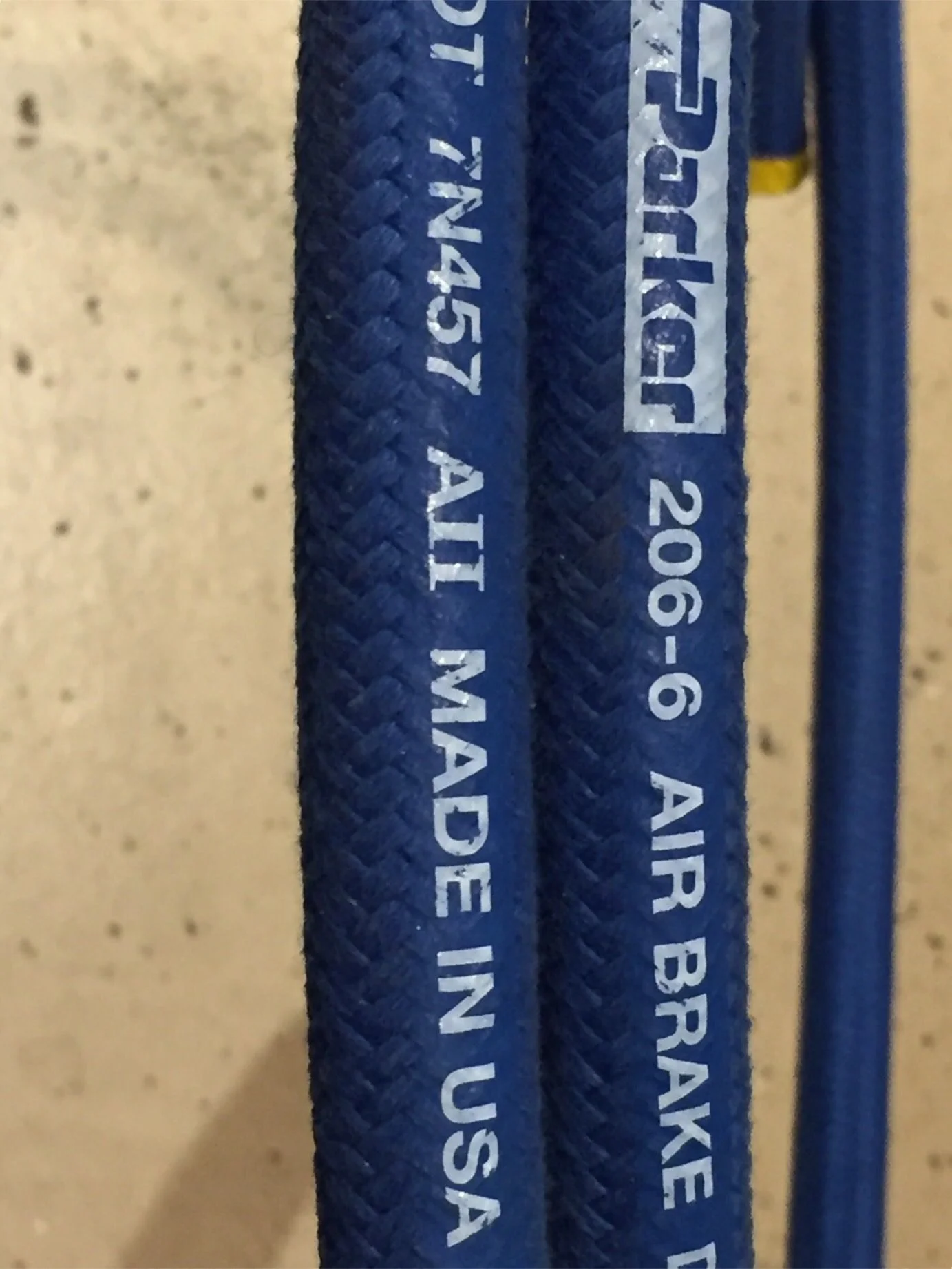 The black hose is -6 AN fuel hose. Blue is the Parker hydraulic hose. Big O.D. size difference.