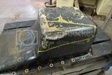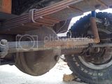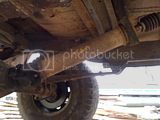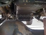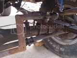 Apparently, to install the Cummins it was necessary to lift it, and so the axles were flipped over the springs gaining about 4"? Anyway, because of this the shocks no longer reach, the steering linkage has been (shoddily) adapted and the oil pan has been gouged and re-welded (several times by the look of it)