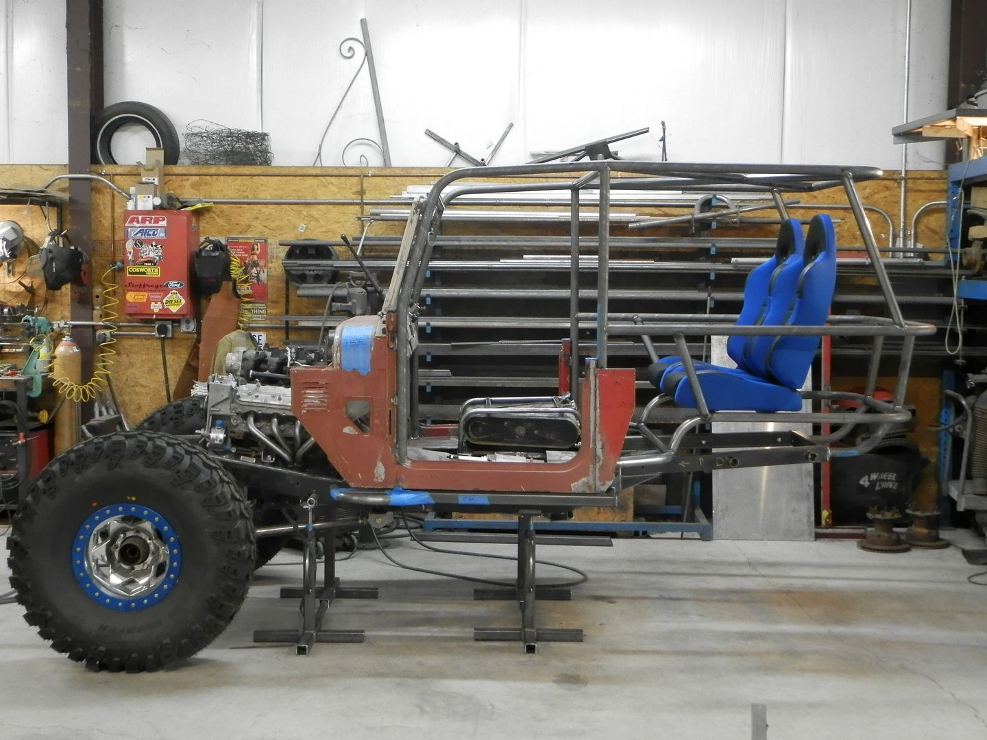 This will not be a street truck so I had complete liberty to build it as I saw fit. I don't like using heims on a street driven truck anyway so if it were a pavement pounder, I would have engineered it to use a Toyota mini truck box and one tone TRE's from Parts Mike with an intersect style drag link.