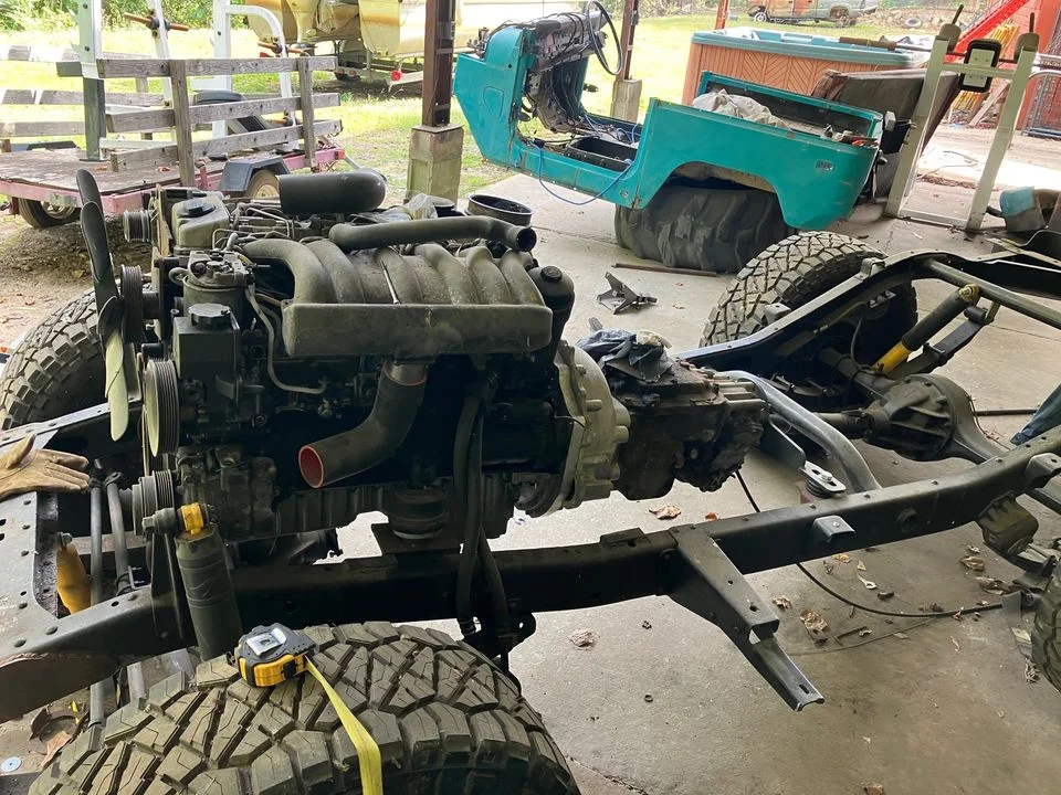 Considering selling my fj40 om606 swap project, I started piecing this together while everything was shut for Covid and got all the main pieces together and then things got back to normal and I haven’t had time to finish it. It is a mix of a 70 and 68 fj40 body parts with a later 4 speed transmission and transfer case. I have an abundance of parts for the 40 itself. The engine is a 99 om606 that has a 603 mechanical pump as well as a 648 oil pump and oil pan to convert it to a rear sump. I do have a video of it running with the mechanical pump. It is mated up to the transmission using a speed gems adapter plate. I have at least 8k in the drivetrain alone and then around 6k in the rest of the parts. I figured I would throw it up and see if anyone has any interest in finishing her up. I'd take 12k for everything.. If you start pricing some of this stuff out you'll realize how quickly all these parts add up if you were going to source them for your own swap. Also will consider selling the entire drivetrain if there is any interest in it.