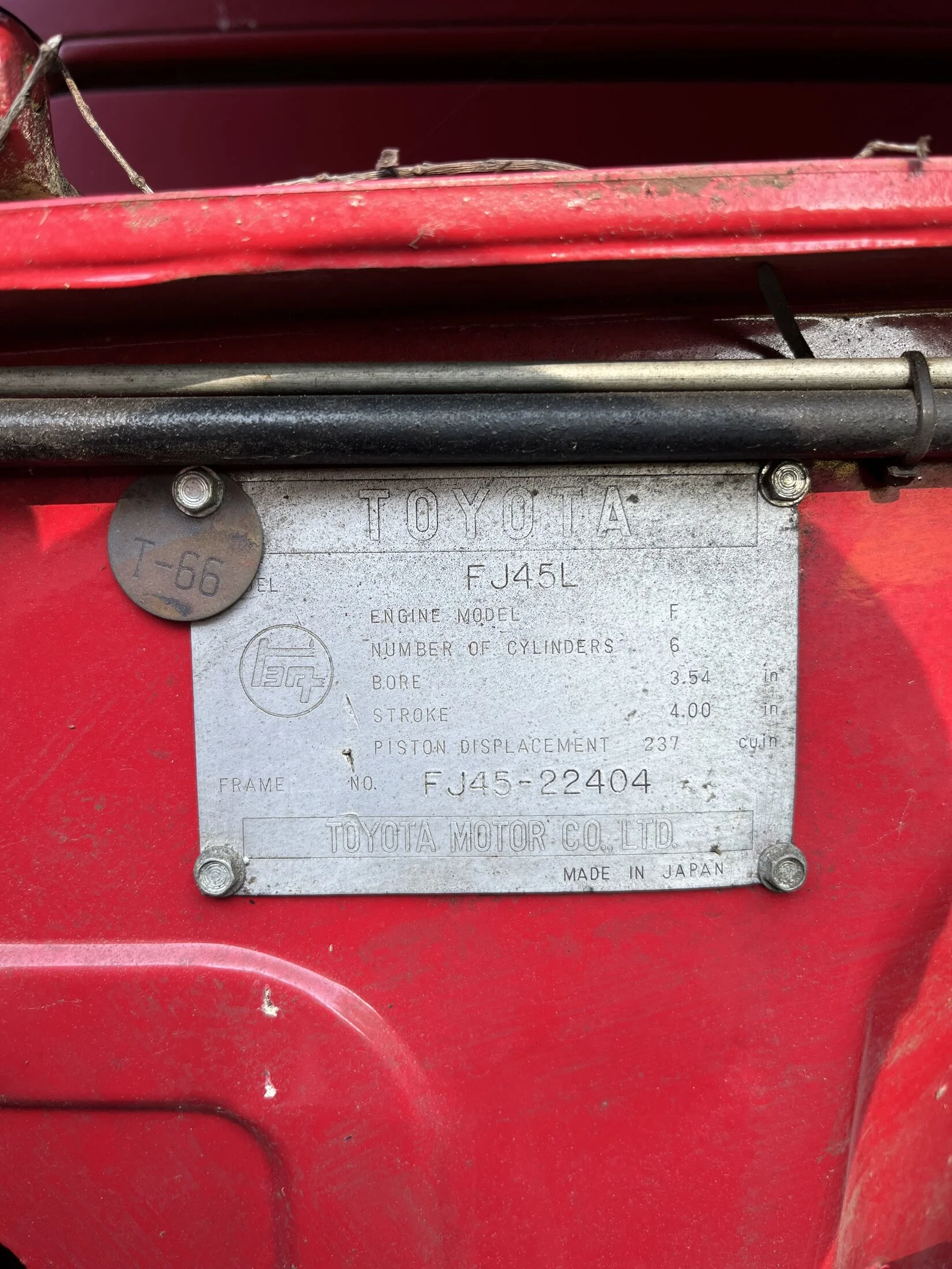 FJ4520734 it has a brass tag but couldn't read it