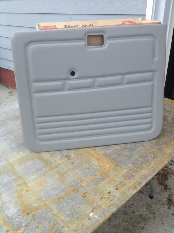 So I've been working on a little project for my '79 FJ55, trying to get rid of the awesome carbon fiber and suede door panels the PO saw fit to install. I had picked up a set of stock '79 door panels in hopes of covering new boards with the stock stamped vinyl. Well, long story short the vinyl wasn't in good enough shape once I got them so they sat in a pile collecting dust for a year or so. A few weeks ago I saw a post in the 70 Series forum where a guy was converting his BJ74 from RHD to LHD, he had some custom panels made to switch the front door controls. I PM'd him and got the contact for SMS Headliners in Georga. We emailed back and forth and I ended up sending him my stock panels, he came up with a design pretty close to the stock pattern for me. I had my set made in medium grey to match my interior, he can also make these in the dark grey color:
