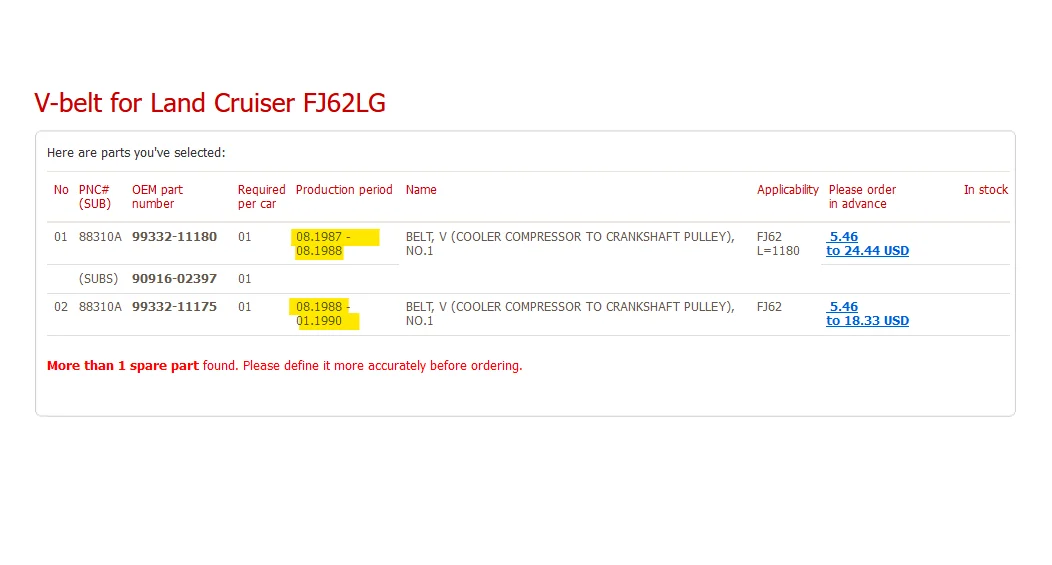 For 1988 - 1990 FJ62's, why is there two options for the A/C Belt? How do I know which to choose?