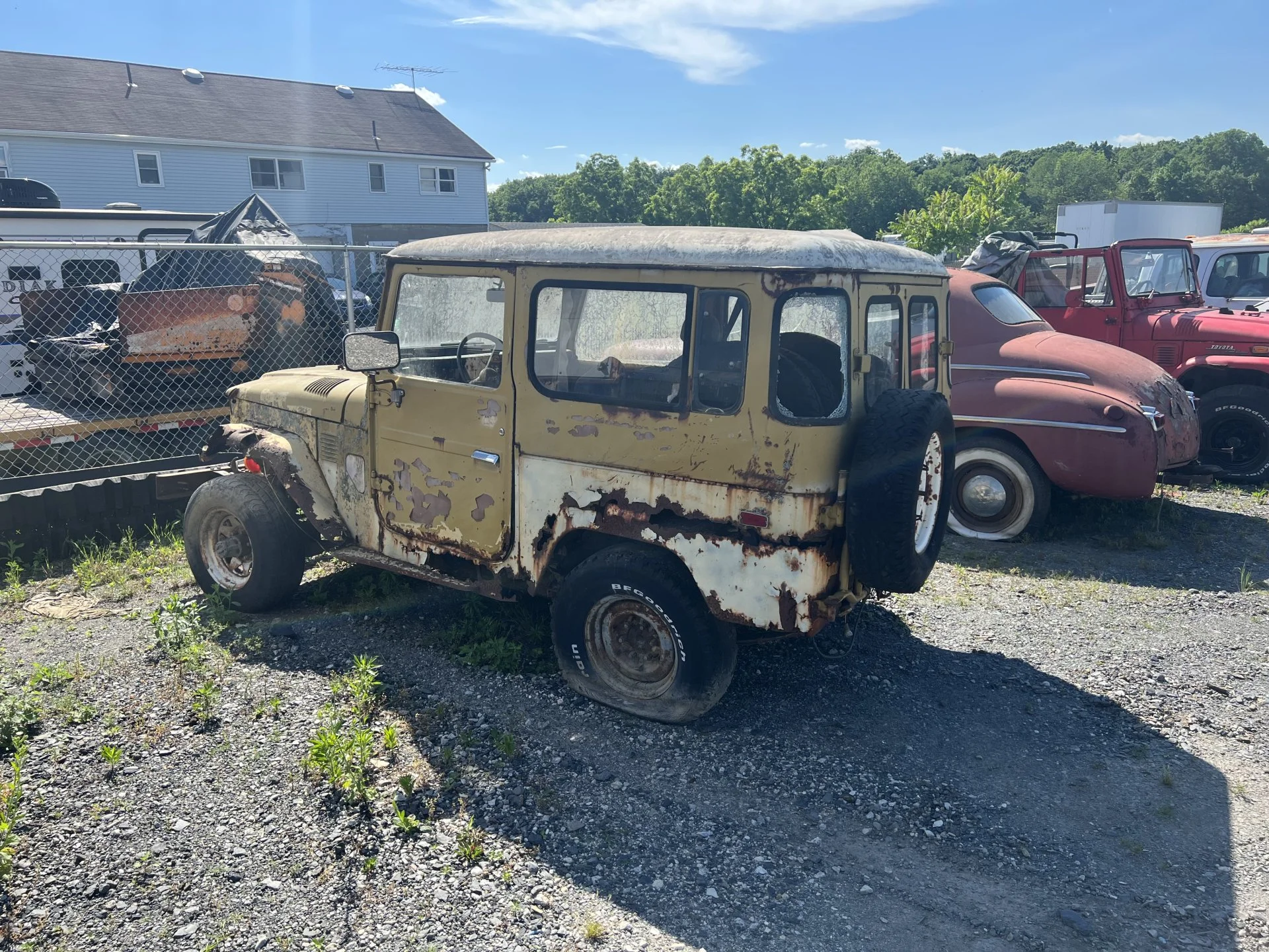 The FJ was bought for parts but it’s complete and no parts were ever taken from it. It has the straight-6 Toyota motor. The bfenders and body have rust but the frame, drivetrain and the inside is good. Has clean paper work. It’s one of three 1971 FJ 40’s that I have for sale.