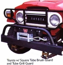 Great Looking... One piece welded 1" square, tube steel, brush guard wraps around outer turn signals and covers grille with 1/2" cross bars. Easy bolt on installation. Powder coated gloss black...