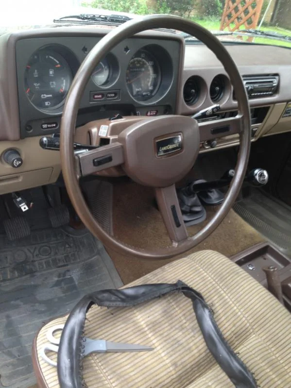 My beautiful wife driving the Land Cruiser for the first time this morning. She loves it, but still wants AC and power steering. :D