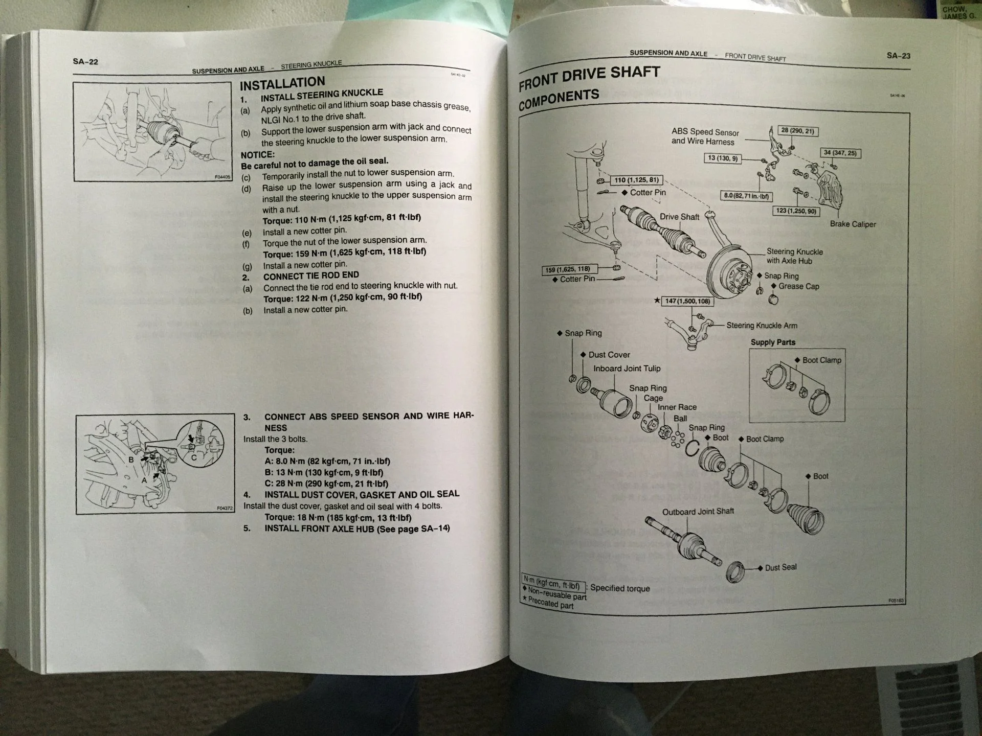 Thanks and also I have the PDF thanks to this forum.Not exactly sure what part that is since it's zoomed in. If it's the steering knuckle, here is what the FSM shows in the pics. Hope this helps. You have to replace those oil seals (parts with a black diamond in the diagram are parts to replace--I've yet to replace the bearings on my 2003).