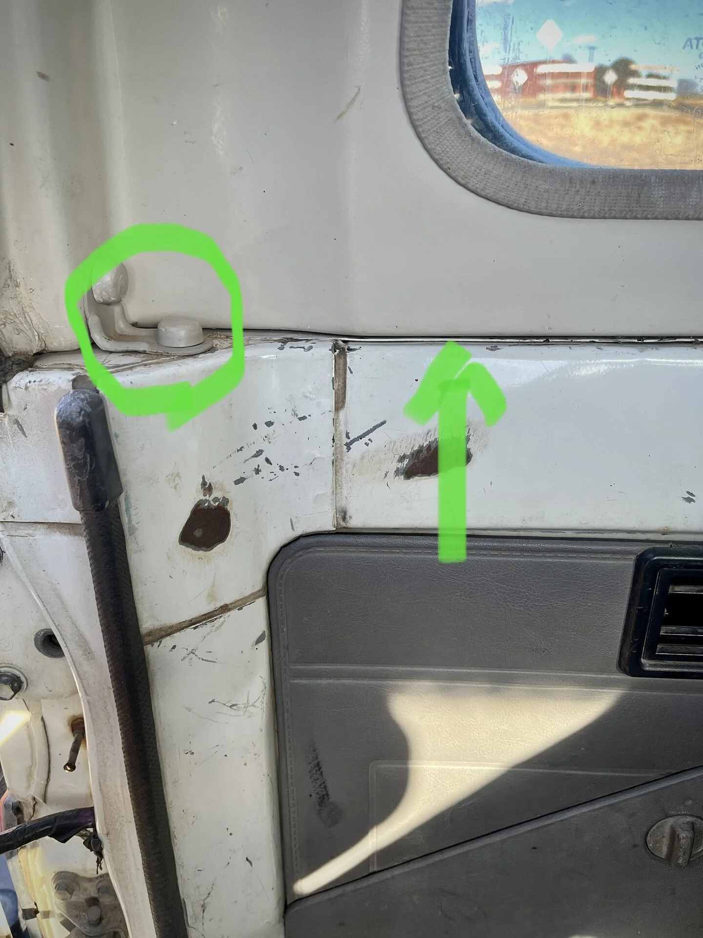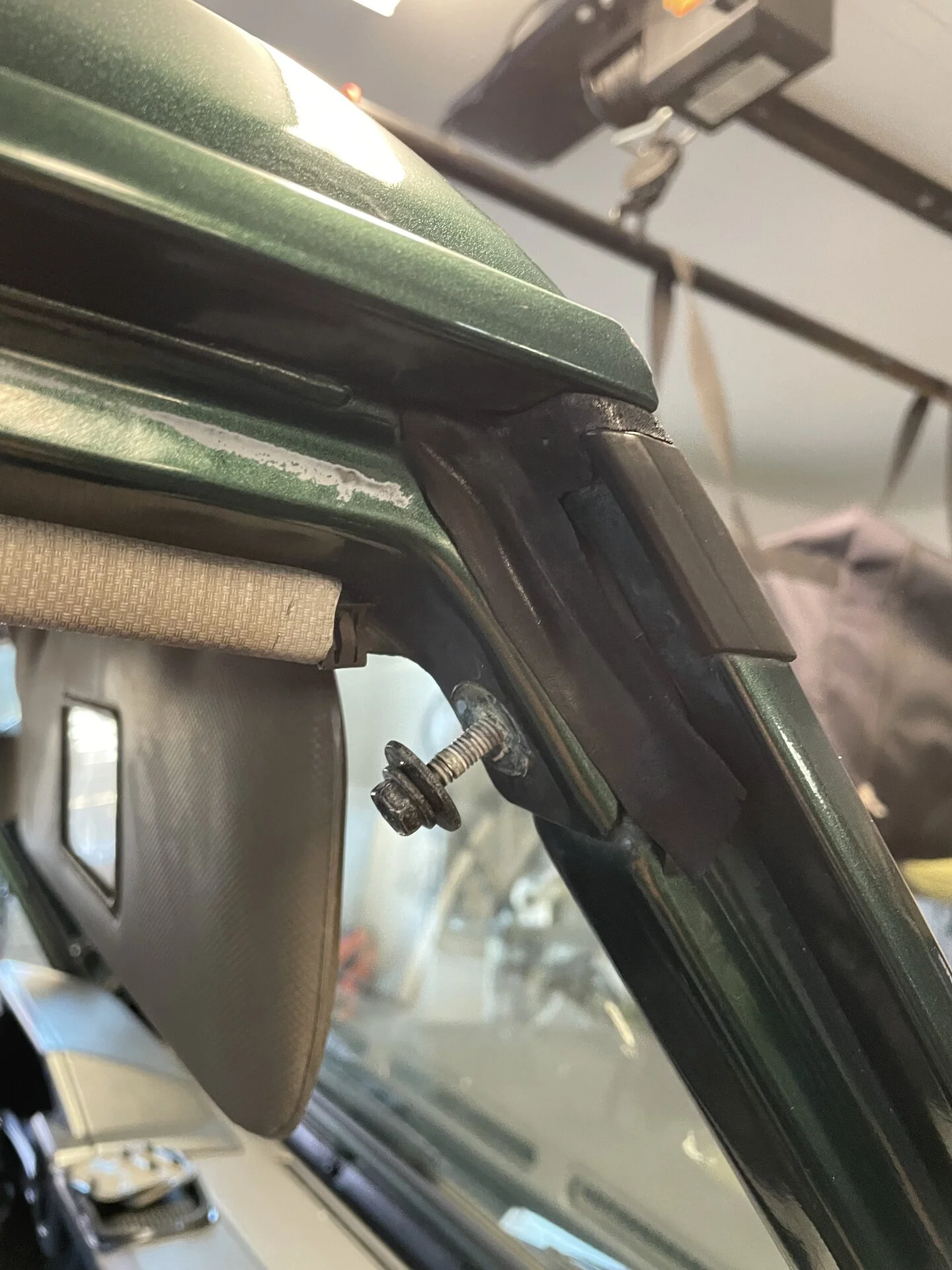 I don’t see any other bolts that would free the Top from the roll bar or quarter panel. It is still gripped tight. I am going to hit the seam with some safe silicon lubricant over night to help loosen 25 years of stuck-ness. But based on some pretty strenuous attempts to separate the top from the body … I suspect come connecting points on the Colombian FZJ73 are “different” than the Service Manual and JDM examples I’m following.