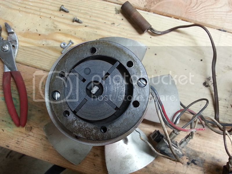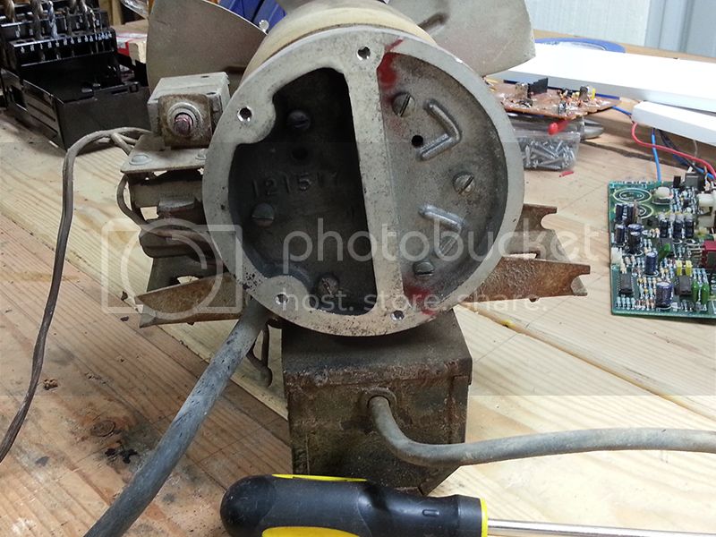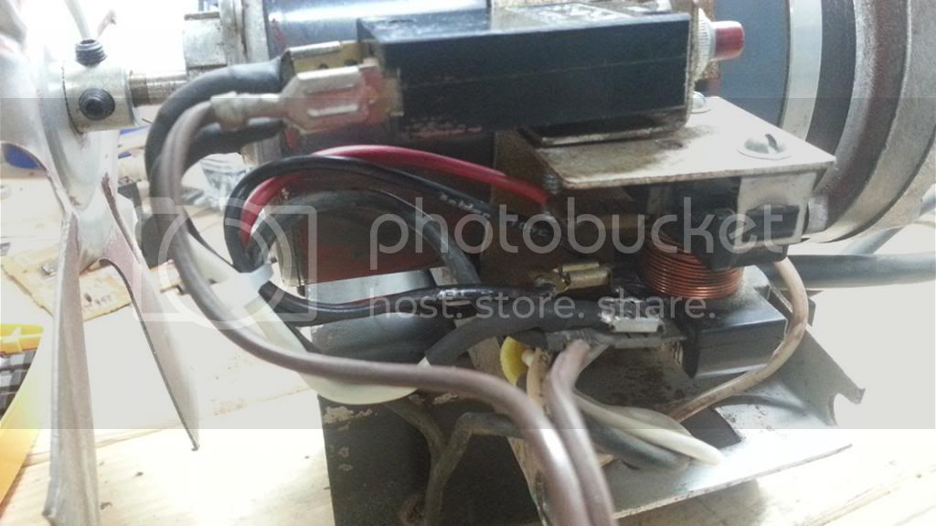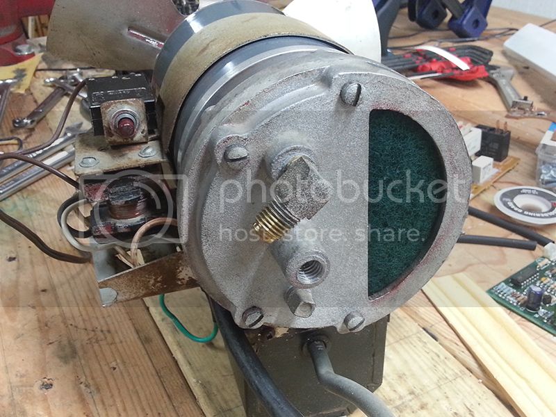 Dusty, nasty, and I didn't get a decent pic, but alot of the wiring inside was beat up badly, with exposed strands and chafed insulation. The cord itself was nearly half wrapped with old gummy electrical tape. At a glance I counted half a dozen chafed/exposed spots, along with the ground pin missing from the plug. Had I known it was this bad (with the exception of the missing ground pin) I wouldn't have used it through last Winter. Yeek. The intake filter was barely hanging on too.