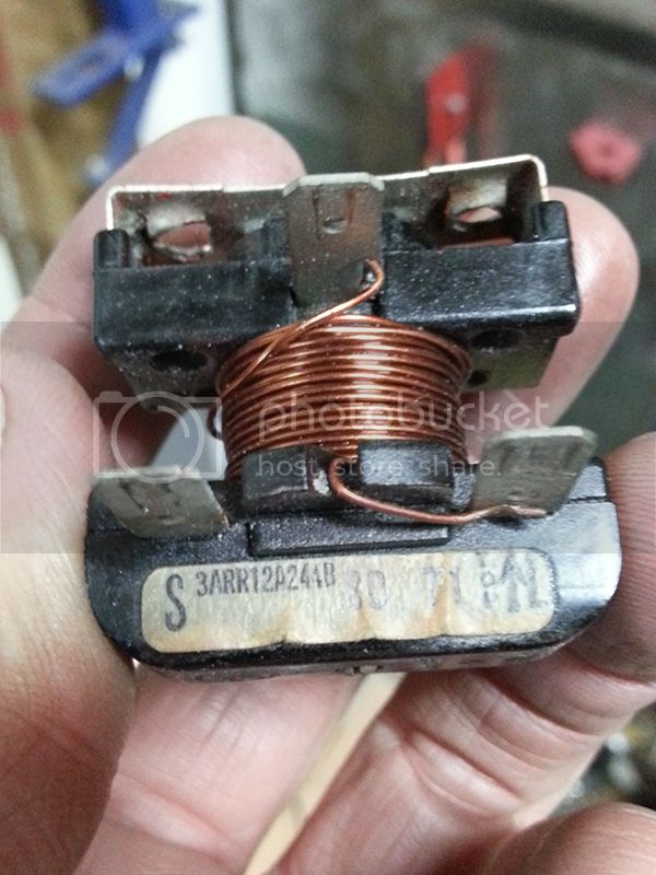 I thought this was kind of interesting on an older heater. I would expect a new one to use a safety mechanism, but was surprised to see one on an old unit. From what I can tell by the way it's wired, this photoresistor (which mounts on the back of the combustion chamber facing the flame) continually drops its resistance if there isn't constant exposure to light, which allows more and more current to pass through the breaker until it pops. Not bad to prevent flooding of the chamber if the flame happens to go out (only had that happen when it's run out of fuel, both before and after overhauling it).