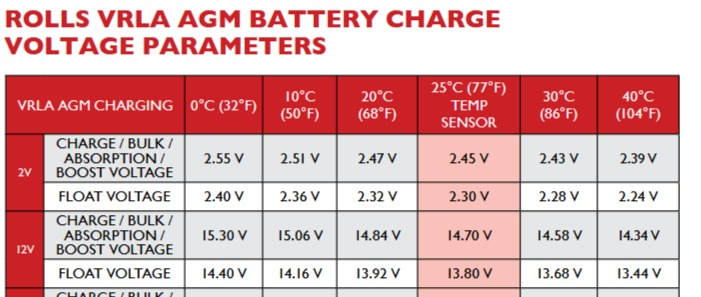 Long story short- the AGM will be fine for a rig - Draw it way down and you'll hammer your alternator diodes and regulator when you fire up your rig. Similarly you'll also hammer them if you draw down and flatten a stock FLA/SLA battery or if you hang a 50A DC/DC charger and AUX batt in addition to the OEM circuits, 19 iPad chargers, starlink, 900W HF radio for calling in the Dominos order in Ulaanbaatar from British Columbia, and the required overland margarita mixer. Yeah, the alternator temp curve could be "better" but it is fine (cats and dogs won't be sleeping together because you install an AGM). The highest voltage I've seen on a 5.7 tundra or 200 is 14.8V. You don't need to use an external charger to float the battery constantly as a starting battery application. Sure if I was using it in an offgrid primary power application I'd care about every coulomb of possible capacity and extended life but in 99.9% of automotive applications the battery draw down during normal use is maybe 15% at start up then covered by alternator for the short charging duration. You may be the outlier but if your power system is high demand you have shunts installed and closed loop charge controllers to monitor SOC.