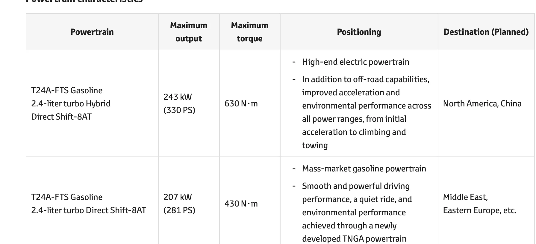 GX Twin Turbo or LC 250 hybrid engine