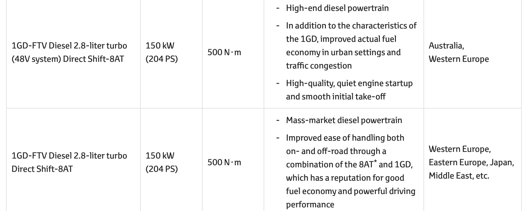 we will get the diesel as well but without the 48v system and no power difference