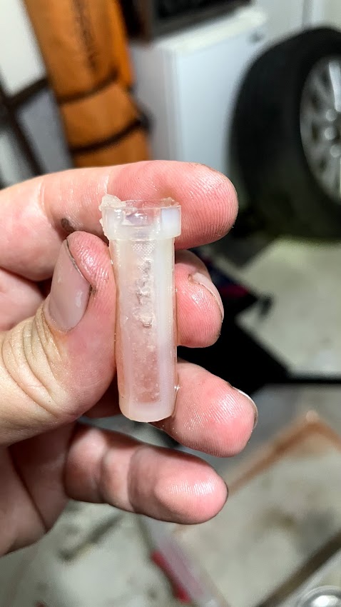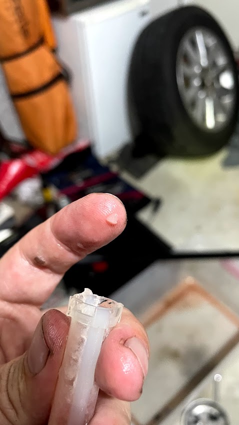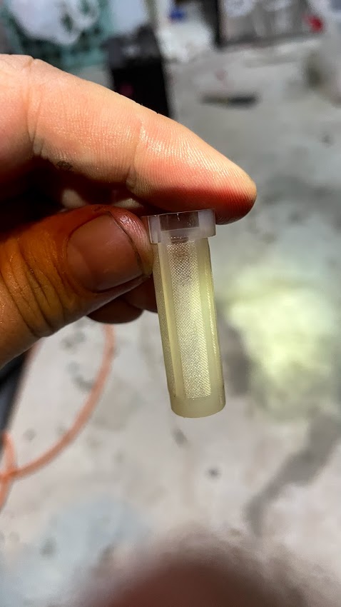 So I stopped and pulled the filter in the filler neck. It was filthy with some kind of jelly-like substance. I cleaned the filter (see clean filter pic below) and started refilling the reservoir again. After what was maybe less than a cup of fluid I pulled the filter again (see nasty filter pic).