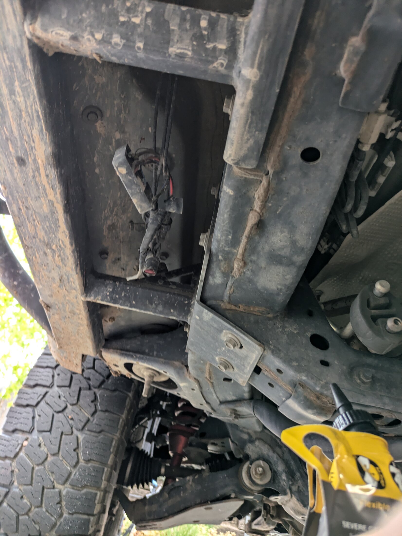 I guess it could be from the light bar setup. It had aftermarket lights when I bought the vehicle but I had them rewired professionally not too long ago and nothing seems to be wrong with the current setup. I noticed it when I was under there changing out all the gear oilDoesn't look factory to me. Rock lights control box? Tow related? GPS device?