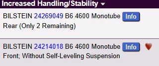 Can attest to Bilstein 6112/5160 being solid options for the price. Makes the car feel more controlled and less wallowy without sacrificing too much comfort. I believe @ryanCA ended up going the Bilstein route too.