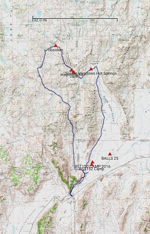 The hot spring camp site has an awesome view, and we could see Loren a few miles out and guide him to the site via radio