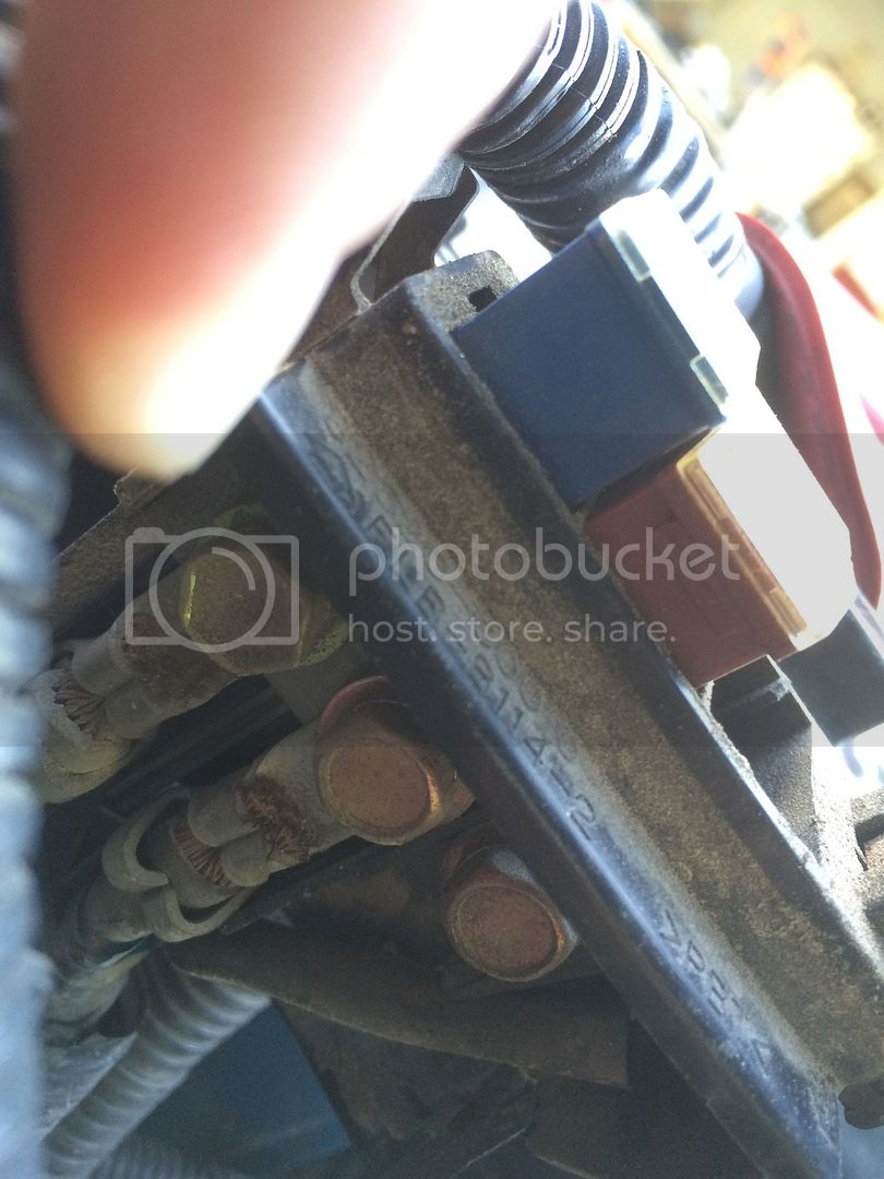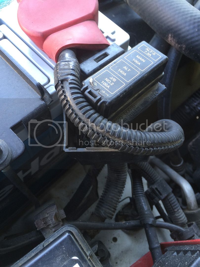 I believe that Toyota already covered this with their system. The 100 series already has this type of system from the factory. The alternator/charge cable is on the left and the alternator sense wire is in this distribution/fuse block.