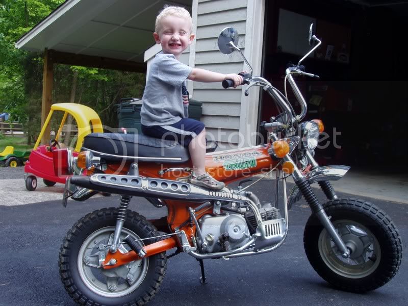Dang. I guess I missed this one. I haven't been on here in a week or so. I am a Mini Trail fanatic. I used to have several but have thinned it down to just one '73 CT70. It is in awesome shape too. It is not a restoration, it's all original. Here is a pic of my boy, Nathan on it from back in '08.