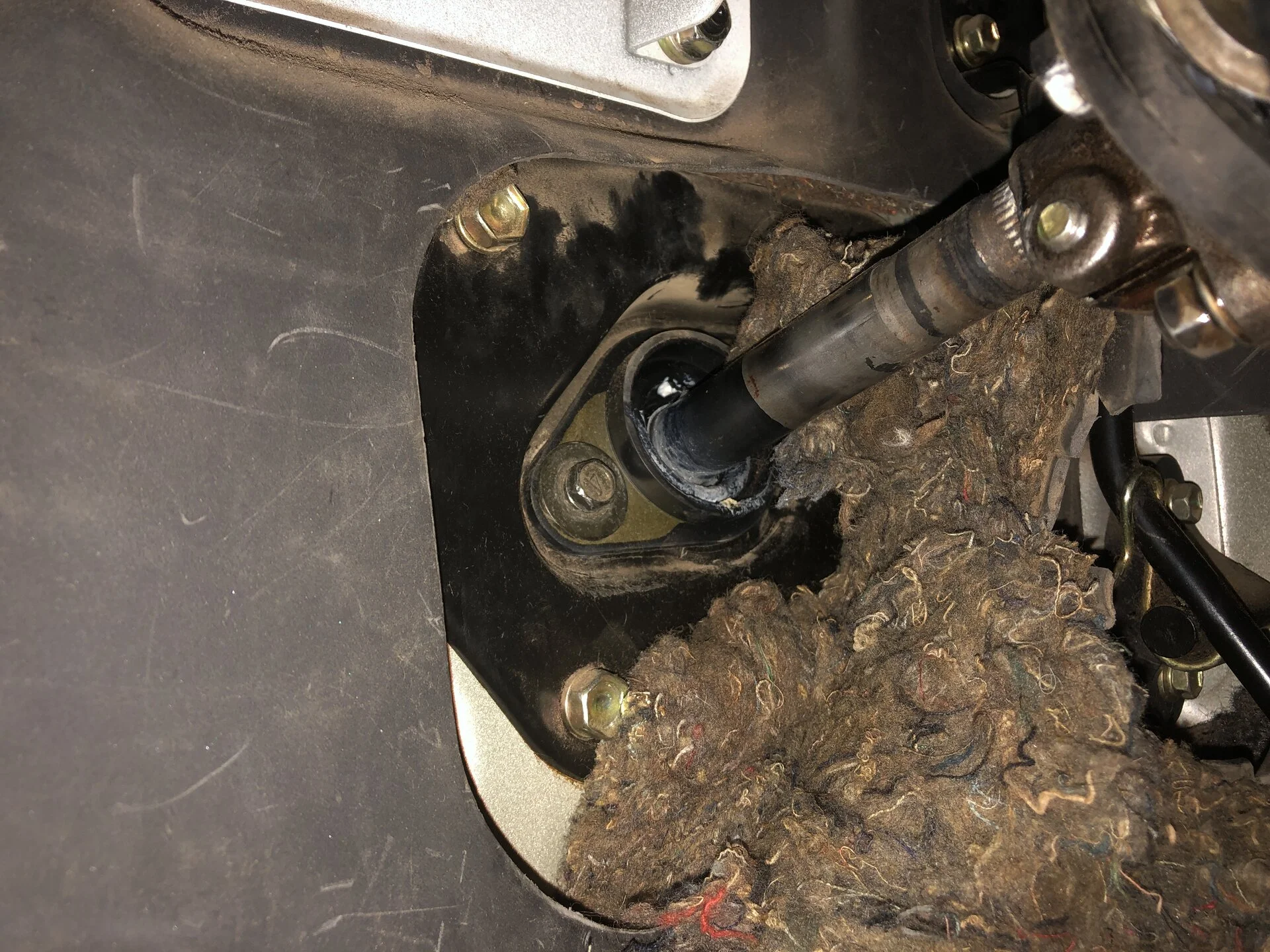To be clear, I removed the 2 12mm bolts and nuts and washers, 2 10mm bolts off the shaft's seal on firewall under dash, and the 2 nuts and washer off the 3/8" dia. Post, and position the post on noon and 6 o'clock position; now my question is, how do I separate the flexible rubber coupling from then u-joint side ?