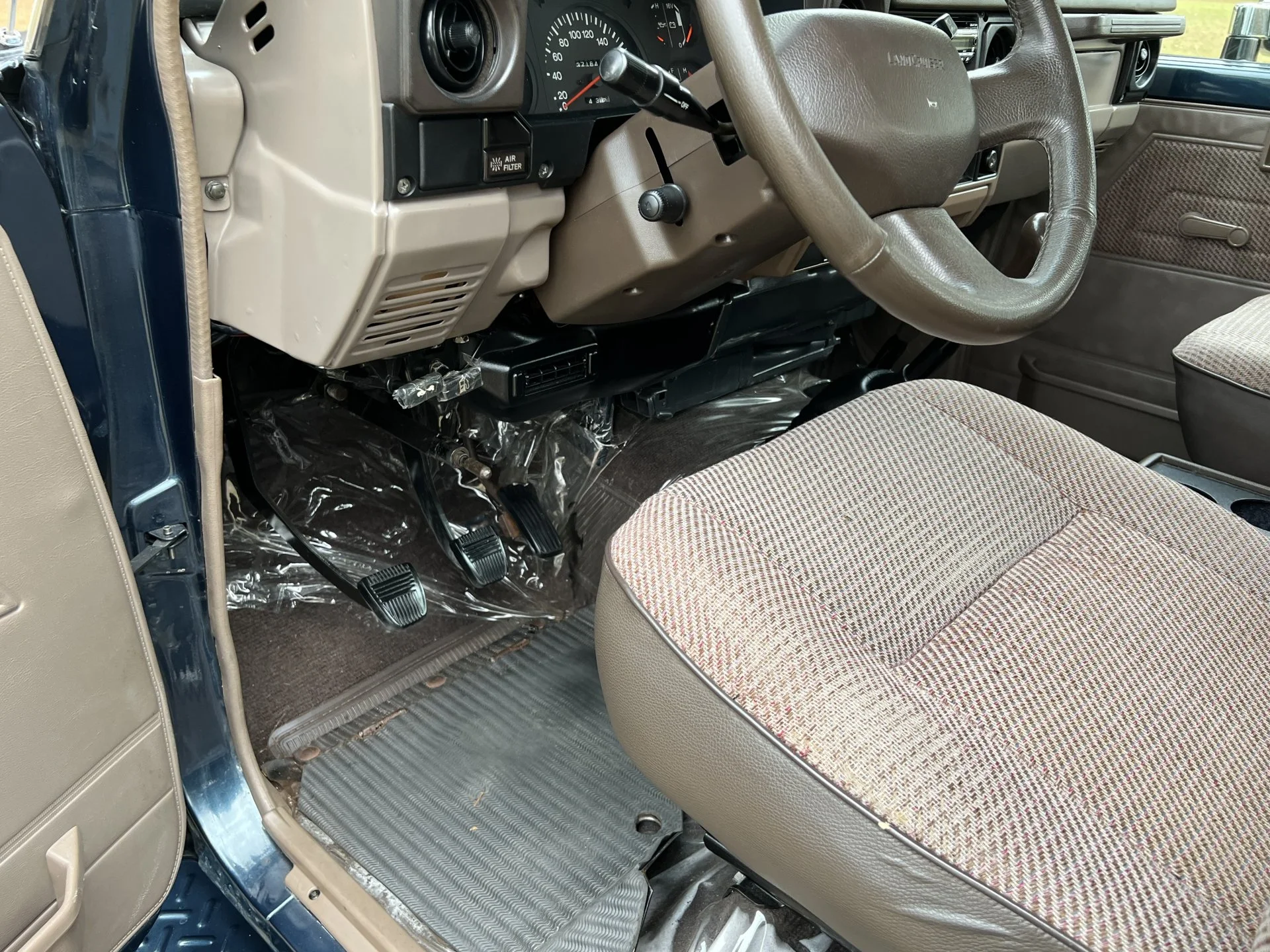 Very rare mint 1994 LX FZJ 70 with 141427 kilometers (88.391 miles), Lefthand drive with the very powerful durable smooth 1FZ petrol carb engine, originally from Venezuela with a full off frame color change restoration with face lift done 3 years ago. This land Cruiser is extremely clean with no rust, comes with a 5 speed manual, new clutch and equipped with a Toyota front axle and rear Dana 60 semifloater. The top LX version has power steering, power brakes, super cold air conditioning, Heater, tilt steering, am-fm-cd radio much more comfortable than the old '40s and capable of cruising down the highway at 80 miles if needed with the newly installed set of 4 BFGoodrich 33 All Terrain tires. This is an original stock well cared for, not abused vehicle that has seen very little or no off road use. It's just a super clean well equipped LX model that can be driven without any concerns. Don’tmiss out, LC’S in these conditions are nearly impossible to find.