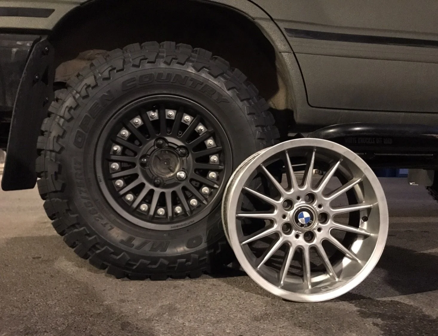 5x150 17x8.5 Hutchinson Rock Monster Dual Bead Lock wheels and 285/75R17 (34x11.5) Falken AT3W all terrain tires. This is for 6 wheels and 6 tires. They were on my 100 series with dual spares for almost 1 year. They do have a couple cosmetic scratches from wheeling over the last year. 2 of the wheels have a bad O-ring. I have gotten replacements for those. They will be included. The bolt pattern is 5x150. They do not include center caps. They use the center Caps from stock land cruiser wheels. I have matched the powder coat on these wheels and can provide a spray can of paint to match to use for your center caps. The Hutchinson Rock Monsters are the only DOT approved bead locks on the market. These should fit Sequoia, Tundra, Land Cruiser, Lexus LX470 & LX570. Located in Las Vegas. Will need a truck to pick up. Looking to get $2500.