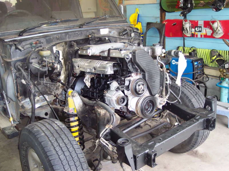 Now the other half of the project, make it run. With doing this swap I also upgraded to a 5 spd manual, which needed a few extra pieces. the stamped holes in the firewall for the 5spd option (vacume booster/master cylinder) didn't work , the holes were in different locations ,and I needed 4 holes instead of just the 2 provided. After I drilled and installed the clutch pedal/ master cylinder, I looked at the setup out of the 79, which turns out would of worked with the stock stampings ( the setup I used was out of a RHD bj74), though this setup used a spring system with no vacume. Thinking of this after is the spring setup a better option?