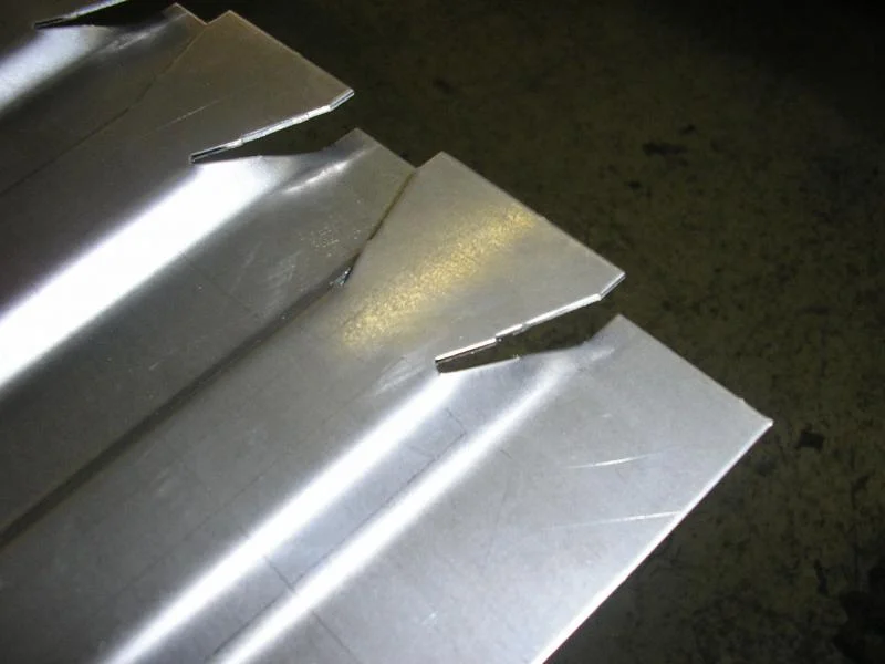 Getting pretty close. Mine is a little sharper rib and the spacing is a bit off. I might be able to go to a .236 top tool and make the rib taller. I'll have to do a few more samples and play around a little more. Also I see now that I can punch the slits a little tighter and have a smaller gap for easier welding. The gap at the top of the rib is 0.087". I can go down to 0.062" and not taper it out as much.