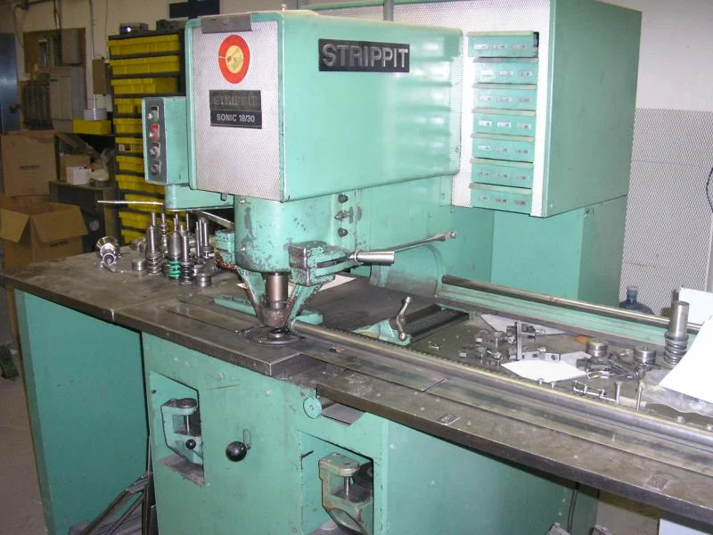 A closer look at the tool. This machine uses the same type of tools as the turret punch, just one at a time rather than 26. Normally it would punch right through the material but I didn't want a hole. I shortened the punch and used an oversized die to get the desired dimples (the machine has a fixed stroke). I can buy a tool for the turret that will do this but thats $500 I can spend on my 45, so I did it manually using tools I have on hand.