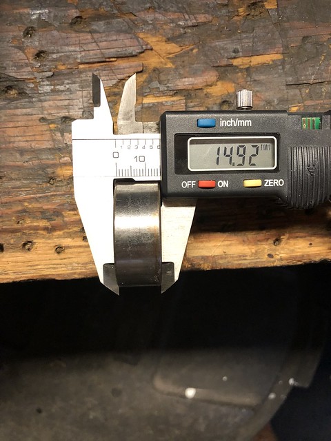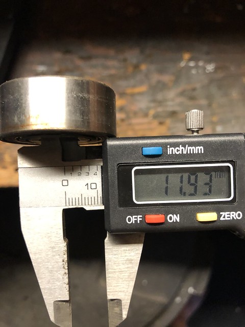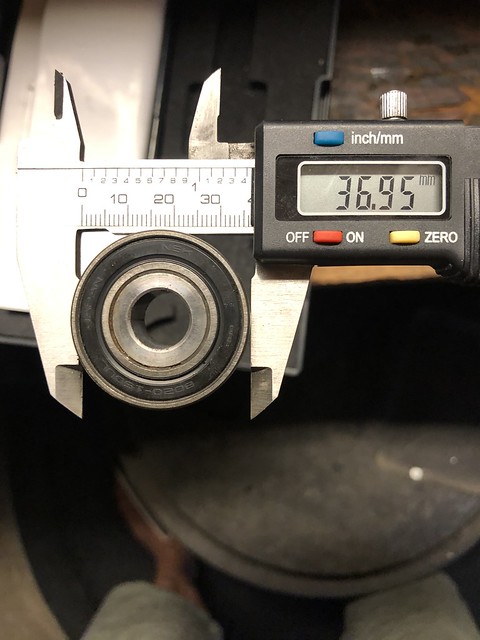 Pulled the tensioner pulley and the bearing in it is an NTN 6203LH (left hand?). Pretty greasy/crusty/ on the inside surface/really free spinny, so a new one there as well. Tensioner itself is well within spec, so I'm just getting a new NTN, knocking out old and tapping in new in the sheave. I'll double check in the morning when I can see better, but the pulleys on the drives seem A-OK.