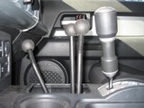 Then there is the triple sticks, which I think are just cool. The left stick controls the H/L range gears in the reduction (crawler) box. The center stick controls the gears in the transfer case and the right stick controls 2WD and 4WD. Nice thing about the triple sticks is I now have the low gears in 2WD as well as about 15 different gear selections with the transmission gears.