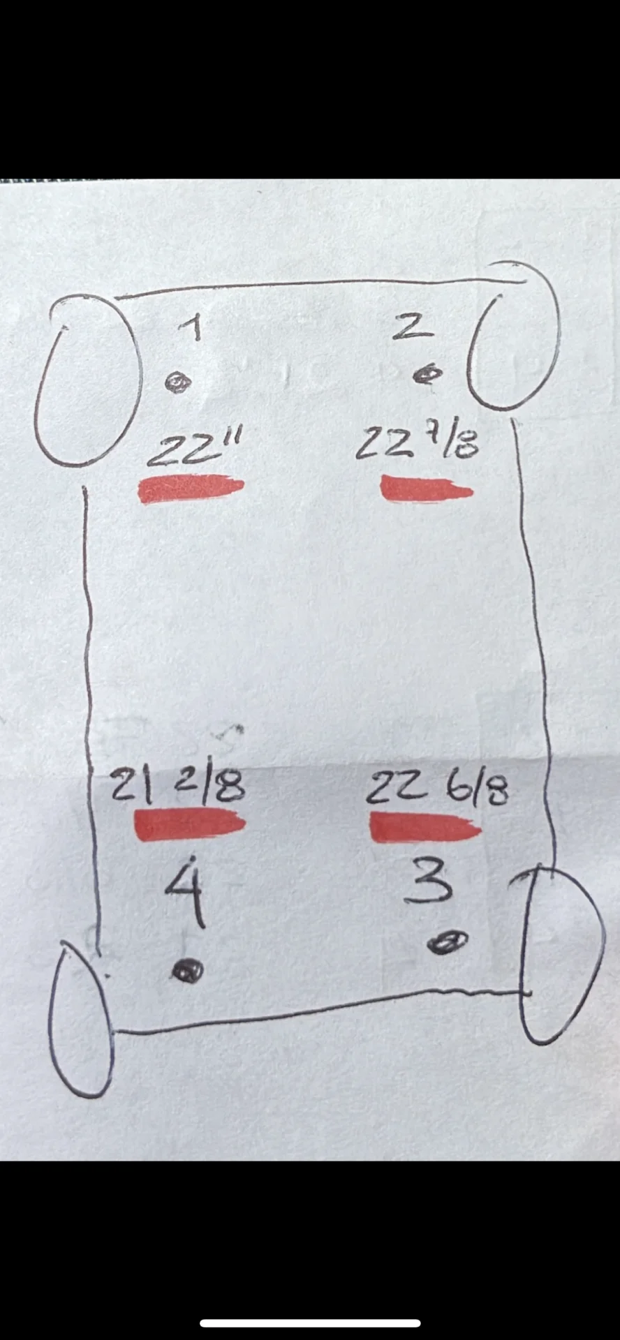 DIF BETWEEN REAR LEFT AND FRONT LEFT: 6/8"