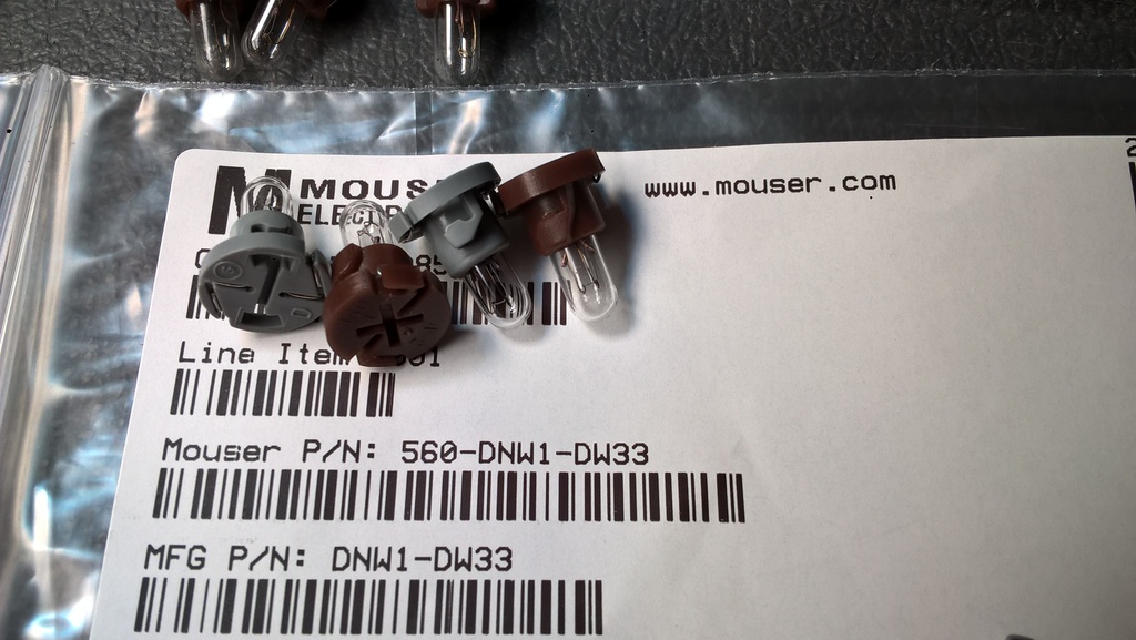 Toyota wants around $10 each for those little 1/4 turn bulbs that are used in the PRNDL cluster, the climate control, and most of the buttons. I finally found a reasonably priced alternative on Mouser: Mouser PN 560-DNW1-DW33 (manufacturer PN DNW1-DW33. $1.18 each. Shipping was $4.99. They're rated to produce 9 lumens at 14V for 5,000 hours.