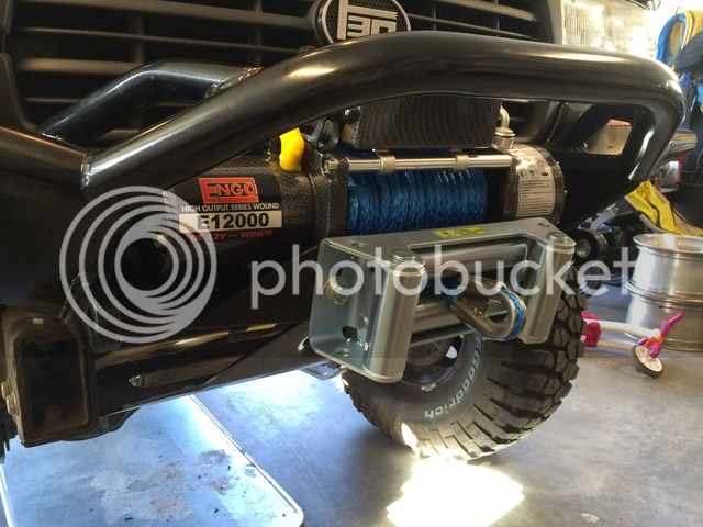 Put an Engo 12000 lb winch on today. We will see how it goes. Some people seem to like them and some dont. Price was right so I thought I would take a stab at it. I put 3/8" Amsteel Blue synthetic line on it and a stainless thimble. Still need to order the right Hawse Fairlead for the synthetic and get rid of the roller fairlead.