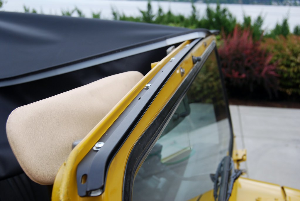 Now about the top: The SOR top has a plastic strip (actually two) across the front. These are designed to go into a "channel" that is installed on the top of the windshield frame.