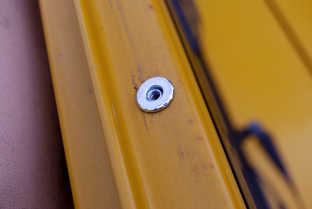 First, you will need somewhere north of 11 "nut-certs" (7 for the top of the windshield frame and 2 each for the footman loops in the back). In my case I used #6 "Pop Jacknuts" that I found at Fastenal: