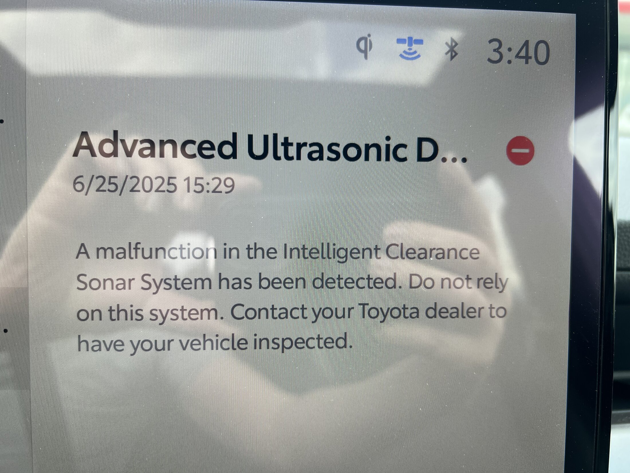 Wow. Intelligent clearance sonar system sounds quite high tech!Driving around today got 3 check engine light codes. Stopped by the dealer and had the assistant shop supervisor download the data and clear the codes. Tomorrow I will drop it off at the dealership for the assistant shop supervisor and shop supervisor to play with while I’m at work.