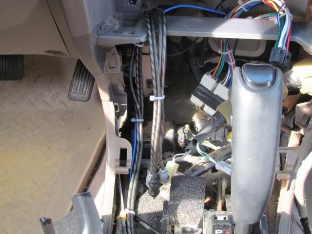 Everything is routed under the console out under the passenger seat. I wrapped all the ends in split loom and electrical tape to prevent them from shorting until I get the amp installed.